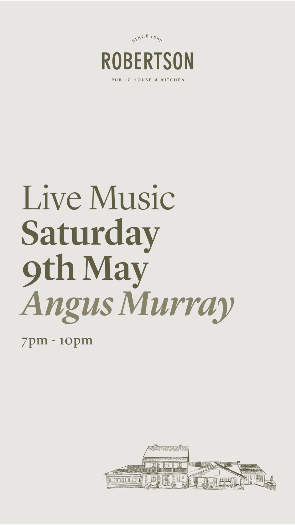 Angus Murray is playing in our front bar from 7pm on Saturday 9th May. See you at the pub!