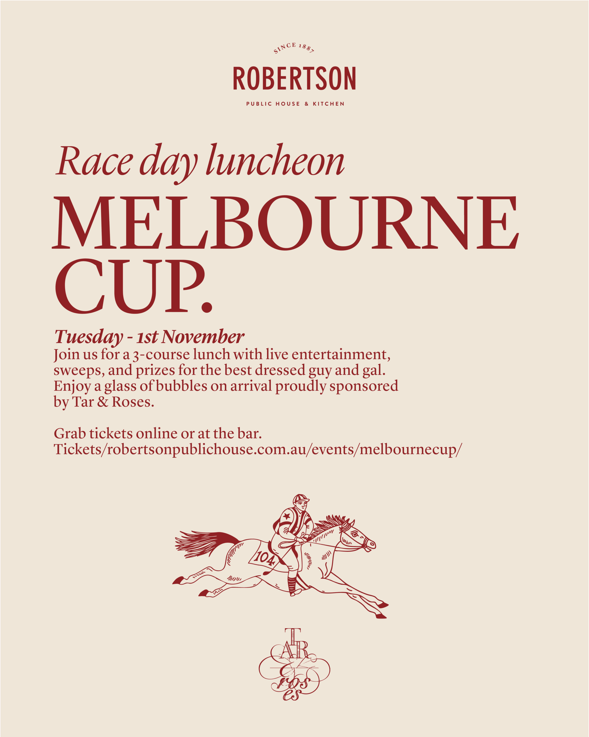 Sponsored by Tar & Roses, enjoy a glass of bubbles on arrival, and a 3 course luncheon with live entertainment, sweeps, and prizes for the best dressed guy and gal.