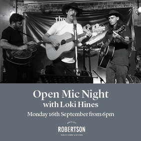 Open Mic Night with Loki Hines! Every 3rd Monday of the month at Robbo Pub! The September session will be held on Monday 16th September from 6pm.